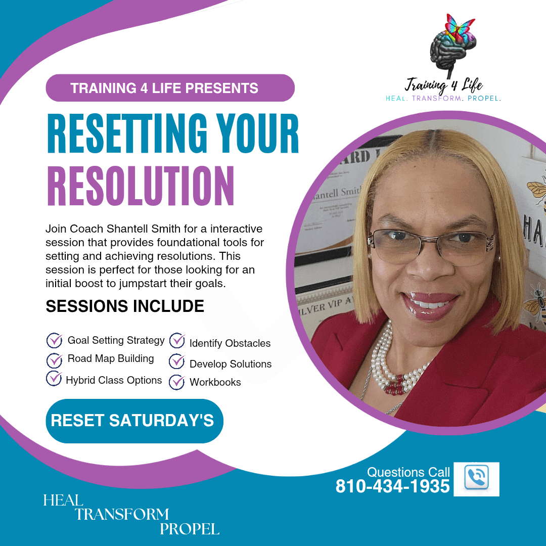Join Training 4 Life for a powerful, faith-based training series designed to help you realign your goals, overcome internal barriers, and take intentional action toward your best life. “Resetting Your Resolutions” is not just a workshop—it’s a transformational journey that blends spiritual insight, financial strategy, emotional healing, and holistic practices.